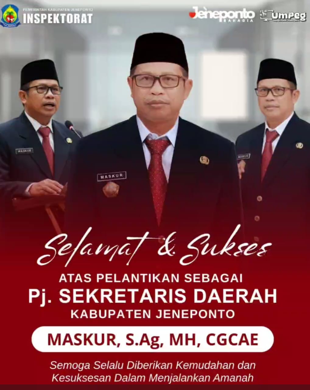 Bupati Jeneponto Lantik Pj. Sekretaris Daerah Maskur, S.Ag., MH., CGCAE Jeneponto31/10/202531/10/2025